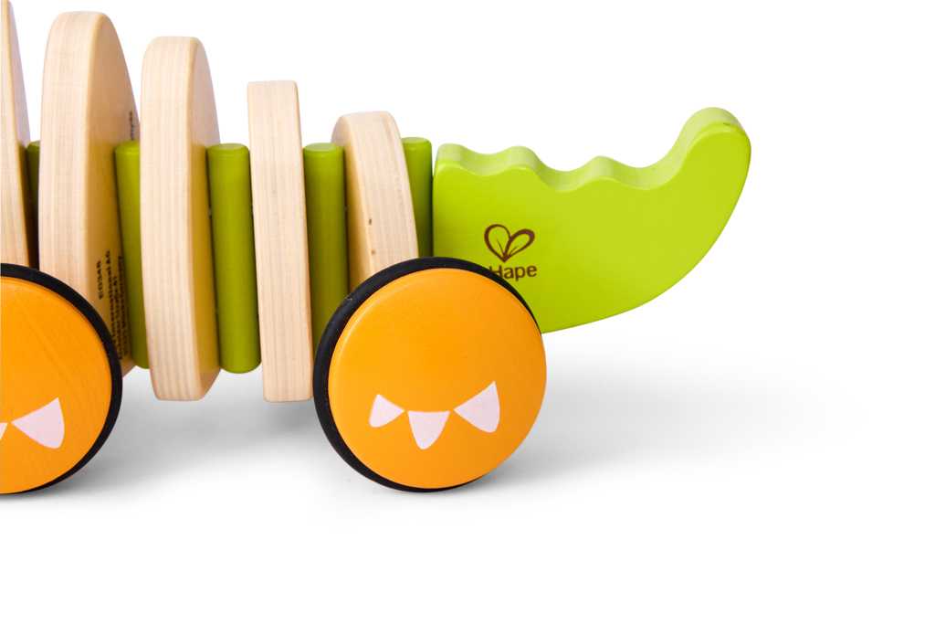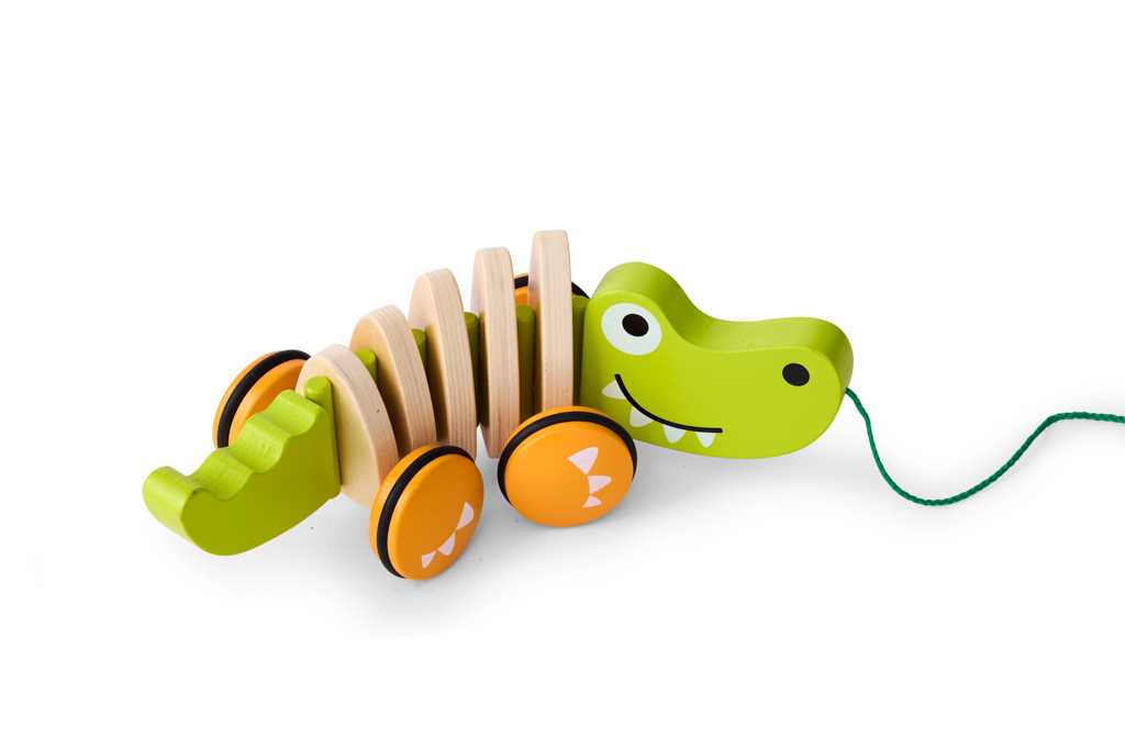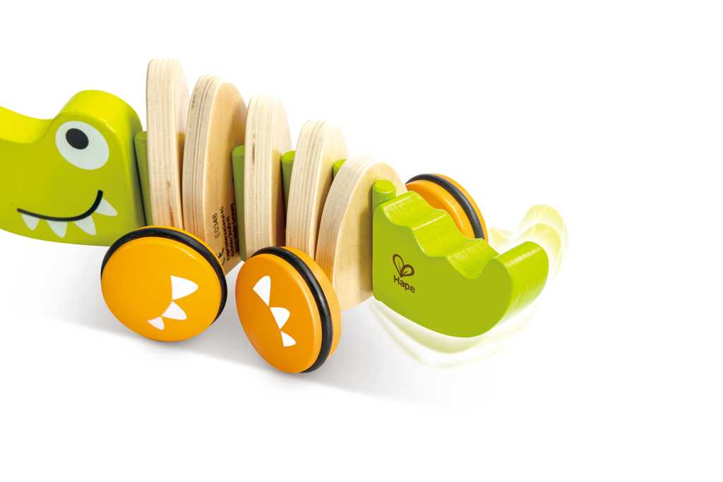 A járás még izgalmasabb, ha valaki követ. Ez a húzható krokodil minden lépésnél életre kel: ahogy a gyermek maga után húzza, a teste játékosan mozog és hullámzik, így a séta nem csak haladás, hanem élmény.