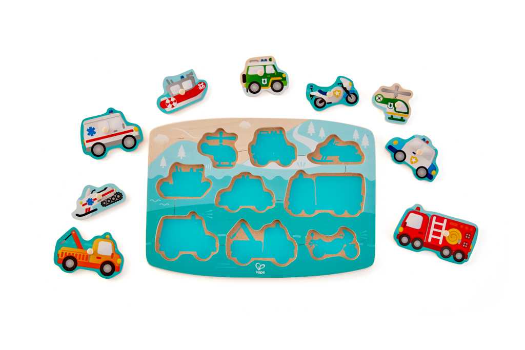 Szereti a gyermek a járműveket? Ezzel a színes, fogantyús kirakóval megismerheti a legfontosabb mentőjárműveket, amelyekkel vészhelyzetben találkozhat.
